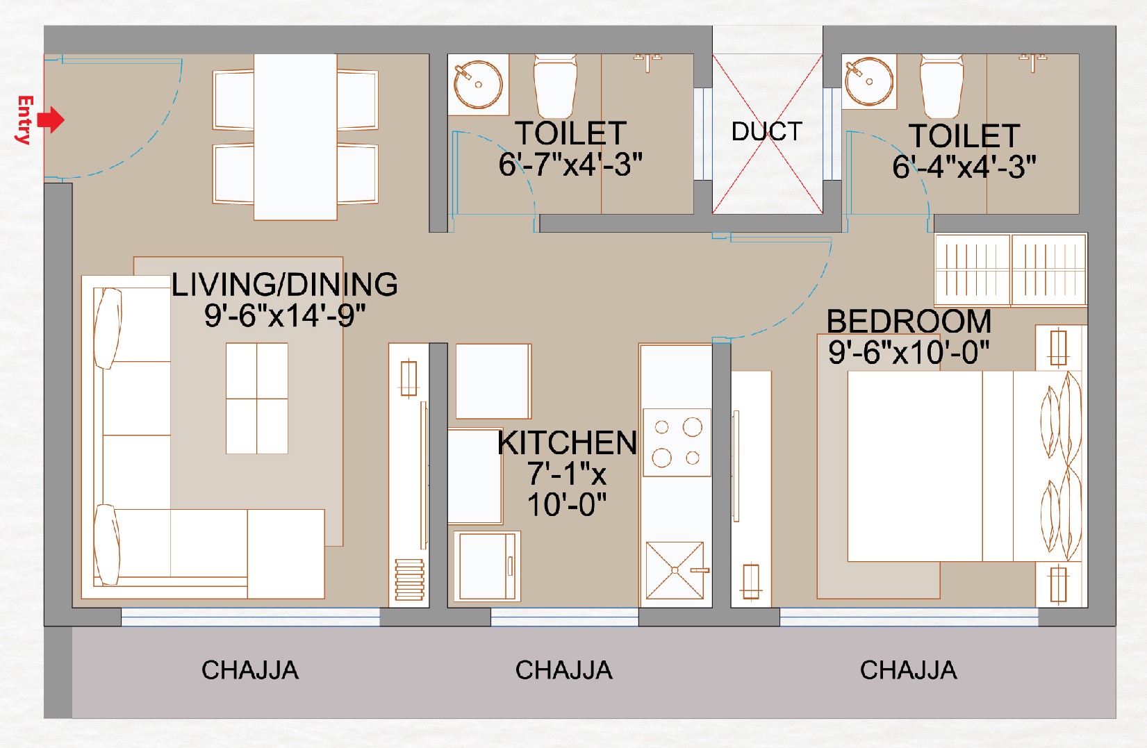 The project offers 1 BHK & 2 BHK apartments, which gives the flexibility to select a home according to your lifestyle and family size. These apartments are designed keeping in mind the needs of the modern home buyers so that they can experience a comfort lifestyle.